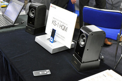 クリプトンは、96kHz/24bit対応USB DAC&アンプ内蔵スピーカー「KS-1HQM」をメインに据え、ハイレゾ音源や、ドック付きトランスポートと組み合わせたiPod試聴など、本機を使ったネットオーディオスタイルを訴求していた。