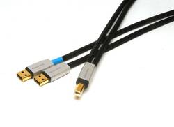 ラインケーブルは、従来モデル「LINE」シリーズをブラッシュアップした製品で、絶縁材をPEからフッ素系樹脂に、内部の緩衝材を綿からシルク(天然絹)に変更。これにより非誘電率を向上させ、導通スピードと質感の向上を図った。USBケーブルも同様の仕様を採用している。導体はPCOCC-A単線導体。100%シールド率の銅箔シールドや、外来ノイズの飛び込み防止と輻射ノイズの抑制をするカーボンSFチューブを採用している。コネクタ部は、航空レベルアルミ合金削り出し制振構造としている。USBケーブルの方は、電源ラインと信号ラインを分離した構造を採用した。