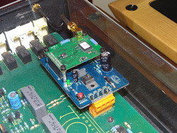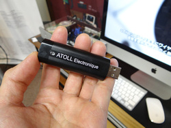ボードを購入すると、筐体背面に装着するアンテナと、専用USBドングルが付属してくる。USBドングルをPCなどに接続した状態で、アンプ側にオーディオ信号をワイヤレスで送り、再生が楽しめるようになる。なお、ATOLLではiPhone/iPod用ドングルも開発を進めており、別売のオプションアクセサリーとして販売を計画しているという。