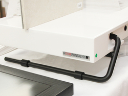 また、フィニッテ・エレメンテのアンプ&スピーカー内蔵サウンドボード「HORIZONTAL51」も展示。さらに新しく開発した専用スタンドも公開している。本体を壁掛け設置する際に使用する機構に取り付けられる仕様となっており、このスタンドを使用することでテーブルや棚の上にもHORIZONTAL51を設置することができる。価格等は未定とのこと。
