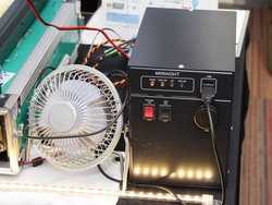 ボルトアンペアは、業務用の充電装置“ミイライト”を展示。通常のコンセントからの給電のほか、ソーラー充電にも対応しているもので、これをベースとしたオーディオ用電源装置をボルトアンペアブランドから今秋に発売する予定だという。今回展示されている業務用モデルの価格は69,800円だが、オーディオ用に入力端子の変更を行うことにより、多少の価格変動を見込んでいる。
