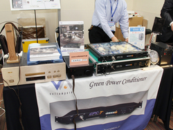 ブースではそのほかにステップアップトランス内蔵電源整合器「GPC-TQ」をフィーチャーし、試聴デモも行っている。