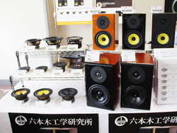 六本木工学研究所は、開発中のスピーカー2機種の試作機を前面に展示した。