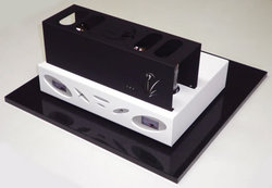 「irisベース」は厚さ13mmの黒御影石を用いたオーディオボード。黒御影石の材質はibukiシリーズと同じものを使用している。
