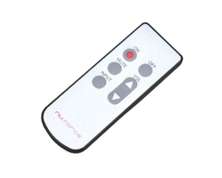 付属のリモコンにより、ボリューム調整、入力切り換え、スタンバイ/ON/OFFの操作が行える。