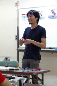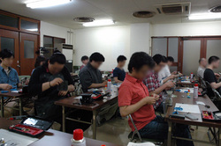 この日、講師となったのはオーディオアクセサリー誌などでもお馴染みの”オーディオみじんこ”、ことオヤイデ電気の荒川敬氏。当日はeイヤホンの広報を担当する西 亮太氏もサポートするというかたちでイベントが進められた。講習会に集まったのは約20名。こうした自作系イベントのなかでもとりわけ年齢層が若いのが特徴だ。なかには自作初心者も参加していたのだが、万全のサポート体制で講習会は実にスムーズに進行していく。