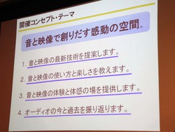 今年の開催コンセプトは「音と映像で創りだす感動の空間」。開催テーマは音と映像に関する最新技術や使い方・楽しさの提案、体験と体感の場の提供、そしてオーディオの今と過去を振り返る。