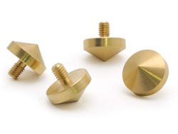 マイナーチェンジし脚部にネジ穴を備えるようになった「OCB-1シリーズ」用のスパイク。真鍮削り出しで制作されている。また、同社では専用の御影石ボード「OCB-BS」も8月末に発売する予定。価格は6,300円(税込)。