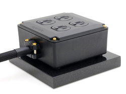 黒御影石とブチルゴムのハイブリッドベース。本ベースに電源タップを置くことで設置が安定するという。