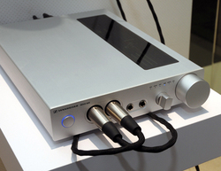 出力端子は通常の6.3mmステレオ出力の他、いまヘッドホンファンの間で大きな注目を集めている4pinのバランス駆動端子も用意。開発者のアクセル・グレル氏(HD800等の開発者でもある)は「ハイファイ機器の理想は完全に左右対象であることです。この左右対象の原則が効果的に双方の歪みを抑制します。つまり全高調波歪みを最小化することができるんです」と語る。なお、純正のケーブル等についてはまだアナウンスされていない。
