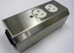 今回製作するのは、デルタエレクトロニクス社のACインレット一体型ノイズフィルターを使用した、ステンレスシャーシ採用の2個口タップ。コンセントはベリリウム無メッキコンセント「R0」で、底面には新製品の真鍮ネジ式スパイク「OSP-SC」を組み合わせる。
