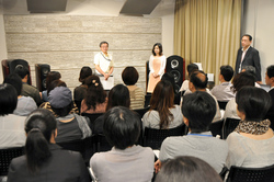 今回は(株)テクニカル オーディオ デバイセズ ラボラトリーズの宮川氏を“特別講師”に迎え、さまざまな音源を聴きながら「音像とは何か?」「定位が良いとはどういうことか?」「録音場所が違うとこんなに音が違う」などが解説された。