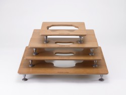 同モデルは従来、同社のオーディオラック「リジッドテーブル」の最下部に追加するオプションボードであったが、サイズが4種類に増え、通常のオーディオボードとしての使用が可能になった。