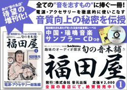 増刊誌『旬の音本舗*福田屋(1)』は、オーディオ評論家の福田雅光氏が『季刊・オーディオアクセサリー』誌へ連続42回、10年間にわたり好評執筆中の連載記事「旬の音本舗*福田屋」を集大成し、新規インタビューなども盛り込んだ一冊。会場でデモンストレーションしたオーディオテクニックや自作例、ハンダの音質比較テストなどの詳細のほか、音楽ソース14曲を収録した、付録高音質CD(約60分収録)も付録。詳細はこちら。