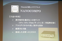 (株)東和電子は、卵形スピーカー「Olasonic」ブランドの次の展開として、小型単品コンポーネントシリーズ「NANOCOMPO」を発表した。2013年3月以降、「できあがり具合を見ながら」(同社山本社長)、順次発売を予定。価格はいずれも未定だが、5〜10万円程度を想定しているという。