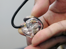 カナルワークスは、先日リリースされたばかりのカスタムイヤホン「CW-L05QD(関連ニュース)」を展示。ブース内で聴デモを行っている。CW-L05QDは、フルレンジのバランスドアーマチュアドライバーを4基搭載するイヤホン。