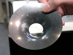 また会場には、三菱の従来モデルのカーナビとDIATONE SOUND NAVIの音質を聴き比べられるコーナーや、DIATONE SOUND NAVIに使用されているNCV振動板の実物も展示している。
