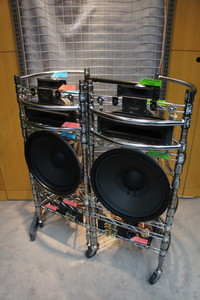 メインで鳴らしているのはJBL「S3900」。JBL伝統のホーン&コンプレッション・ドライバーを搭載しながら、10インチ(25cm)径のウーファーをダブルで搭載。十分な低域エネルギーを確保しながら、スリムなトールボーイスタイルを実現し、設置性にも優れている点も特徴の製品だ。