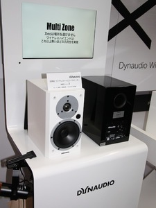 超ハイエンドスピーカーがお目見えした一方、同じくDYNAUDIOから、クオリティとワイヤレス接続による利便性を両立した話題のスピーカー「Xeo」(関連ニュース)が出展。デモが積極的に展開されていた。
