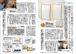 さらには注目製品をクローズアップした記事も盛りだくさんで掲載中。中でも化学、繊維企業の大手企業である(株)クラレが開発した吸音/調音パネル「静御殿」が本誌にて初登場している。