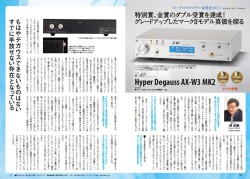 注目していただきたい記事のひとつが、(株)愛和が手掛ける消磁&エージングマシーンの第2世代モデル「ハイパー・デガウスAX-W3MKII」のレポート。「オーディオアクセサリー銘機賞2013」において、音質向上アイテム部門の金賞ならびに特別開発賞の“ダブル受賞”という栄誉に輝き、同製品に関し、詳しいレポートをお届けしている。
