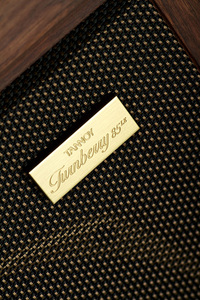 グリル、ネームプレート、バッフルのターミナルパネルも専用品を採用。背面には85周年記念モデルであることを示すメタルプレートが取り付けられている。
