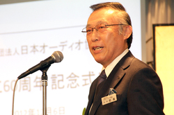 なお、今年2012年は日本オーディオ協会設立60周年、CD誕生30周年という記念の年に当たる。校條亮治会長は「1952年12月4日にソニー創業者・井深大氏の呼びかけのもと『日本オーディオ協会』はスタートし、同年12月には早速4日間の『全日本オーディオフェア』を開催、ラジオの立体放送実験なども敢行した。昨今、日本国内においてはデジタル化・小型化の波によってオーディオ業界の低迷が語られるが、設立当初のエネルギッシュな活動は現在まで連綿と続く礎となっている。節目の年を迎え、これからの課題は“次の60年へいかにつなげていくか”ということ。とかく技術や機能が語られがちではあるが、日本が世界に誇る『感性価値』を忘れないことが重要だ。今後もオーディオを日本の幹たる産業に復活させるべく努力を続けていく」と語った。