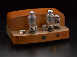 この「A-014」は300Bの音質を手軽に楽しむために開発された入力ボリューム付きのシングルステレオアンプ。パワーアンプとしてだけでなく、これ1台でプリメインアンプとしても機能できる製品で、基本的に300Bの出力管は別売。自身で好みの300Bが選べるようになっている。また、ロシアのJJ社およびドイツのエミッション・ラボ社の真空管を搭載したバージョンも用意されている。