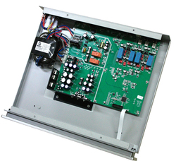 本体サイズは430W×95H×380Dmmで、質量は10kg。フロントパネルに20mm厚のアルミを使用し、2.5mm厚の高剛性スチールシャーシを採用。脚部は3点支持としている。強度・剛性・絶縁性を高め、シャーシ内の温度を一定に保ち安定した動作を行えるよう配慮した。