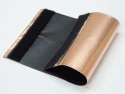本製品は特殊素材のシールドシートと銅箔をハイブリッド構造にし、電磁波の影響を軽減する高音質化アクセサリー。プラグの設置部分をくるんで、装着されているマジックテープで両端をとめて使用する。電源インレット部、RCAラインジャック部、スピーカーケーブルターミナル、USB端子など、電磁波の影響を軽減する効果をもたらす。