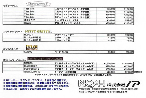 (株)ノアは、同社が輸入販売しているブランドの製品販売価格について、2013年4月1日受注分から値上げすると発表した。