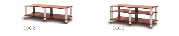 「RADIUS DUO Series」は合計6本の支柱を備えるラック。棚板の厚さは19mmで、棚板1枚あたりの最大荷重は60Kg+60Kg、スパイク、スパイク受け皿、六角レンチを標準装備する。
