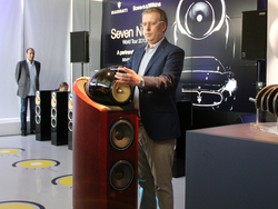 本日都内で開催されたB&Wとマセラティ ジャパン(株)の記者発表会では、B&Wのブランドディレクターであるダニエル・ハイキン氏により、両社のパートナーシップ締結に対する思いが語られたほか、クアトロポルテの実車が用意され車内サウンドシステムのデモが行われた。また、B&Wによる、両社のパートナーシップ締結を記念したスピーカーやヘッドホンの開発も発表された。