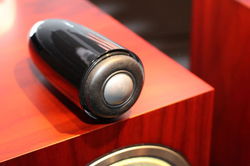 トゥイーターの取付構造にも工夫が凝らされている。リジッドに固定するのではなく、キャビネットにアイソレーティング・ジェルを重ね、その上にトゥイーターを置いている。このためトゥイーターを動かすことが可能となっている。強固に固定しないことで、共振を抑制している。