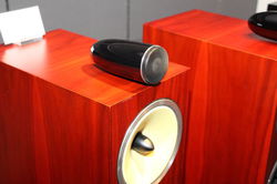 ミッドレンジはFSTで、150mm径のものを1基搭載している。ミッドレンジユニットの取り付け方法も、800 Diamondの工夫が盛り込まれている。CM9では、ミッドレンジはバッフル面に直接固定されていたが、本機ではユニットを後方から引っ張る構造を採用することにより、キャビネットからデカップリング。これによりキャビネットとの共振を抑えている。