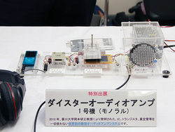 香川大学工学部は、同大名誉教授の工学博士 岡本研正氏が開発する新増幅素子を使用した“次世代型アンプ”「ダイスターオーディオアンプ」を参考出展している。