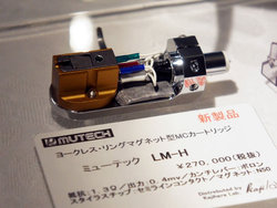 カジハラ・ラボのブースでは、MUTECHブランドの新製品であるヨークレス・リングマグネット型MCカートリッジ「LM-H」などを展示している。