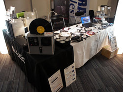 サエクコマースのブースでは、各種ケーブルの展示に加えて、HRT製品などを展示。HRT製品ではUSBヘッドホンアンプ「Head Streamer」を体験することも可能。全自動レコードクリーナー「VINYL CLEANER」なども展示している。