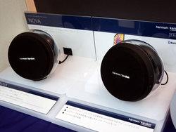 さらに、ハーマンカードンブランドではNFC対応のコンパクトなポータブルBluetoothスピーカー「ESQUIRE」や、球体デザインでパッシブラジエーター搭載の2ウェイスピーカー「Nova」、薄型のバースピーカーとサブウーファーによる8.1chサラウンドシステム「SABRE(セイバー)」なども参考出展。それぞれ年内の発売を予定しているとのことだった。