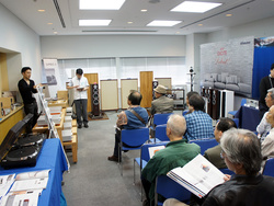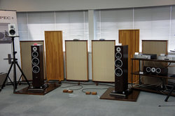 ディナウディオジャパンとスペック、関口機械販売、スフォルツァートは共同ブースを展開。各社が時間ごとに順番にデモを行っている。