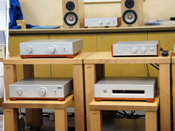 ディナウディオでは新製品の「EXCITEシリーズ」やSHIMAUDIOの「NEO MOON」などをデモ。スペックは「RSA-888」「RSA-M5」といった新製品アンプをデモしているほか、関口機械販売のデモタイムではスフォルツァートとの共同でアクセサリーを活用してのチューンナップ解説を行うなどしている。