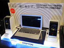 クリプトンは、USB-DAC&アンプ内蔵スピーカー「KS-1HQM」などによるハイレゾ再生を訴求。ハイレゾ音源配信サイト「KRIPTON HQM STORE」や、Blu-ray Disc Audio作品なども紹介し、ハイレゾの魅力をアピールしている。
