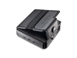 1100mAh/3.7Vのリチウムポリマーバッテリーを内蔵。充電はUSB経由で行い、充電時間は約3時間半で、最大約11時間の連続使用が可能。そのほか専用バンド付レザーケースが付属する。