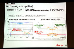 本機の大きな特徴のひとつは、正確な再生を目指すためにオーバーサンプリングフィルターを無くしたDAC「Non Over Sampling DAコンバーター」(NOS-DAC)を搭載したことだ。