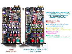 今回は、CARAT-TOPAZ Signature、izoとzionoteが共同開発したSystem13をベースに発展させた独自チューニング「z-Tune」が施された。電源、USB部、DACのI/V部、バッファー部、ヘッドホンアンプなどにおいてオペアンプ交換からコンデンサーや抵抗を外して換装などの作業を行うことで高音質化を図っている。
