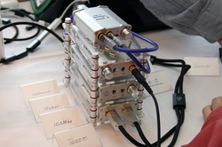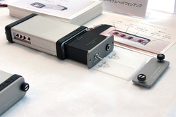 開発中の「HA-11」をAC電源で使用できるオプション「ホームパワーサプライユニット」は、最終試作段階に入ったとのこと。こちらは電池のスペースにホームパワーサプライユニットを差し込むことで、AC電源アダプターからの給電が可能になるというもの。外出先では電池で使用し、自宅ではAC電源で電池の減りを気にすることなく使用…という利用スタイルが可能だ。