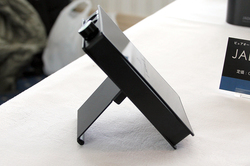 また電源部のフラップがスタンドになり、立てかけて使用できるユニークな構造も備えている。