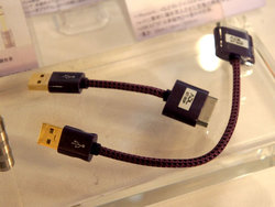 そのほか、iPhone 4S/4などでデジタル伝送を可能にする30ピンドックケーブル「GT-30P」も参考展示。こちらにも「GT2-Pro」同様に。α-OCC素材に銀を混入された銅銀合金線材を採用するなどしている。