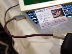 また、ハイエンドグレードのUSBケーブル「GT2-Pro」も参考出展。α-OCC素材に銀を混入された銅銀合金線材を採用し、柔軟性PVC2層とナイロンスリーブ1層による効果で振動の影響も軽減させるという。30cm/60cm/1.2m/2.5m/5.0mの5種類をラインナップする予定。