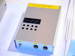 TU-05は、TUR-06よりも若干小型で、一回の充電で約10時間の使用が可能。電源モジュールなどを独自開発しているほか、アウトプットトランスも新開発のもので、コンデンサーや抵抗類も大型で高耐圧、高信頼の部品を使用しているという。
